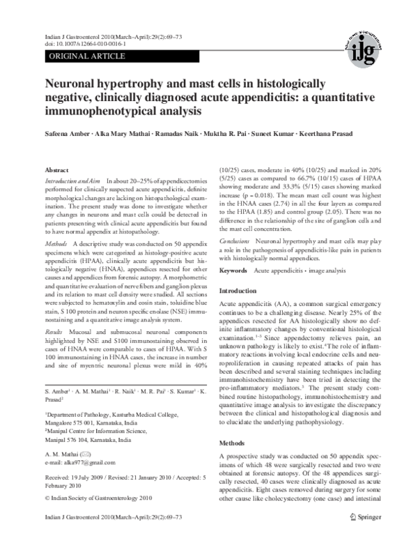 Pdf Neuronal Hypertrophy And Mast Cells In Histologically Negative Clinically Diagnosed Acute Appendicitis A Quantitative Immunophenotypical Analysis Keerthana Prasad Academia Edu